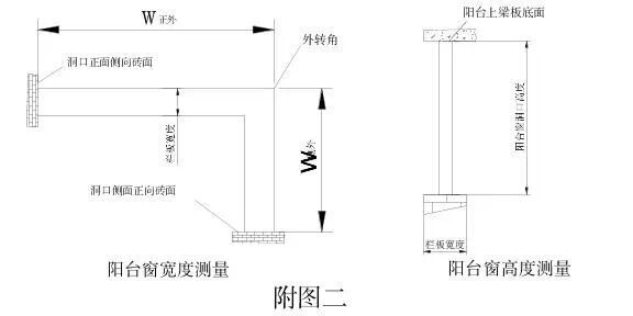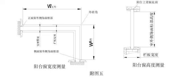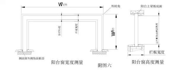 非常规阳台的具体测量部位及尺寸标注见附图七。