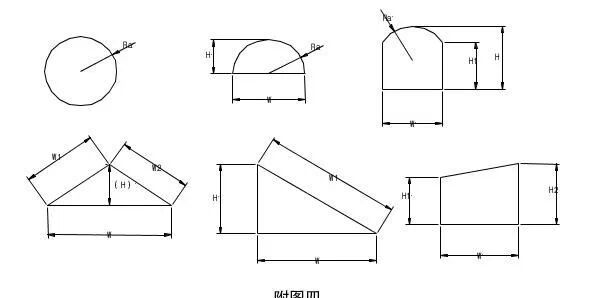 异形窗尺寸测量可以参考附图四中各部位尺寸,测量应以窗室外侧饰面根部尺寸为准。