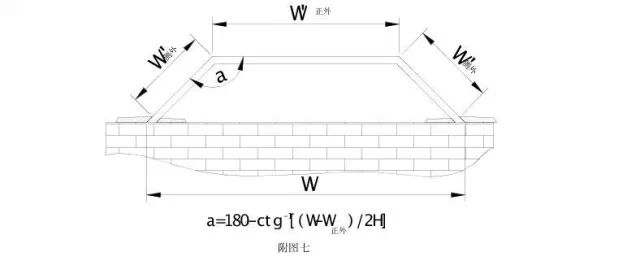 W侧外-(栏板宽度-窗框厚度)χctg(a/2)/2-宽度常规缩尺量/2